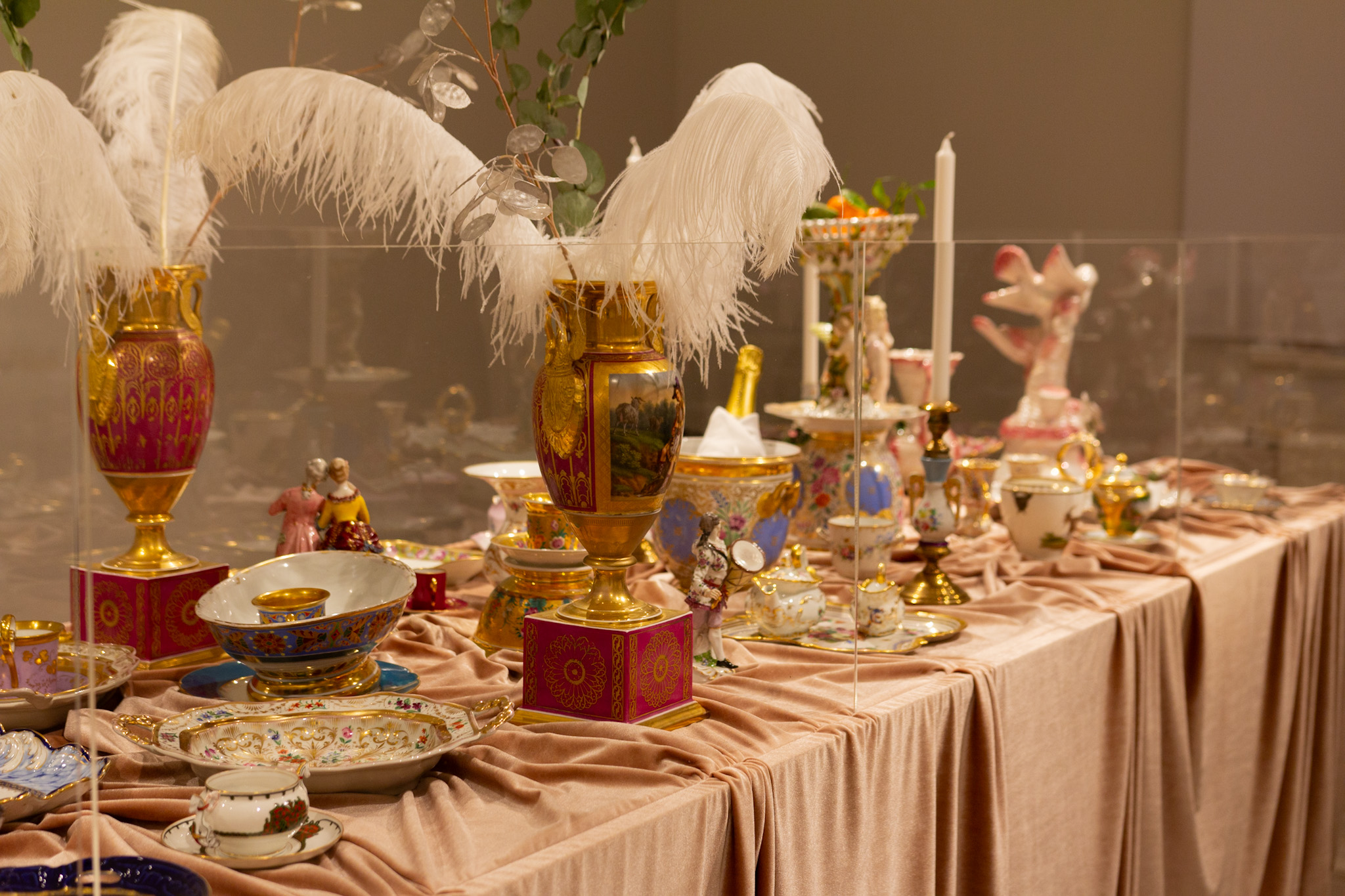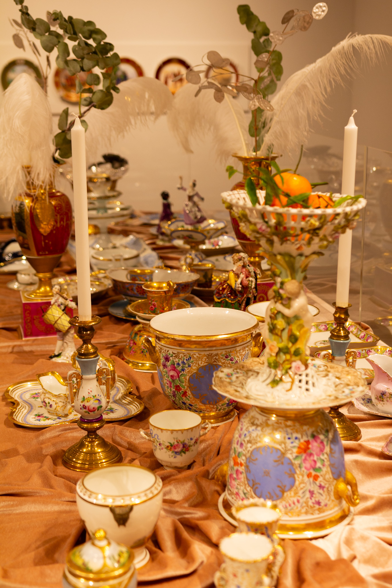Scenogrāfiskais iekārtojums izceļ porcelāna unikālo vizuālo un stāstošo spēku, ļaujot to ieraudzīt jaunā gaismā – kā smalku, skaistu vēstures liecību par to, kā svinēja toreiz.